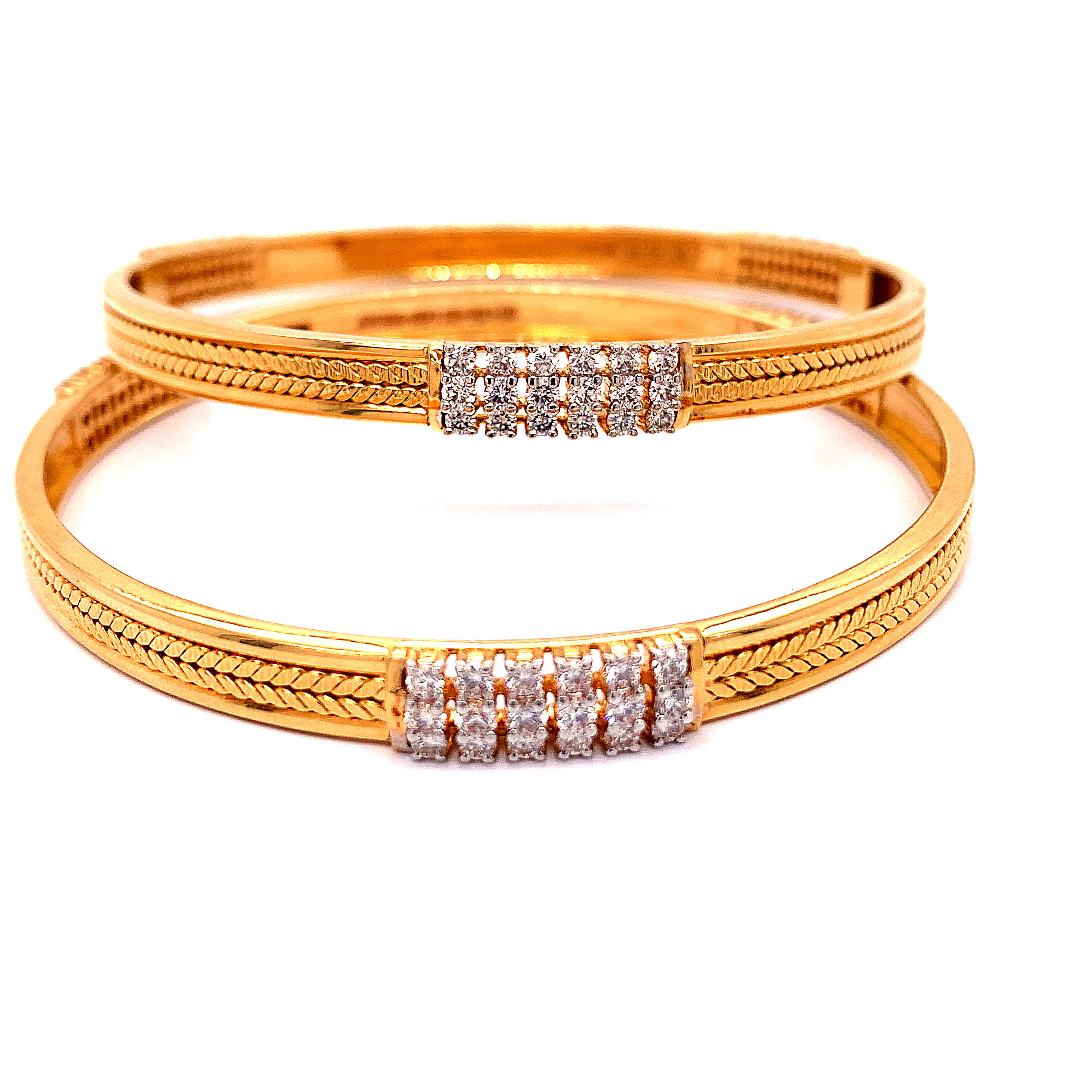 Classic 18KT Diamond Bangles, White Rhodium Plated Prongs Studded With 108 Pieces Of Round Brilliant Sparkling Diamonds.